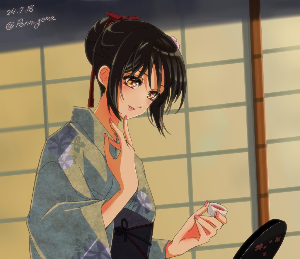 フォーエバー七夕!!!!上品で大人っぽくも可愛らしい浴衣でいやー副長いい趣味してはりますわ。帯から髪飾りからメイク道具一式まで揃えてるのホンマ凄い。いつの間に。薄っすら差した紅が可憐ですわほんと。合流のタイミング的に日が落ちるギリギリから化粧開始かな、と隙間を妄想するのも楽しかったです。