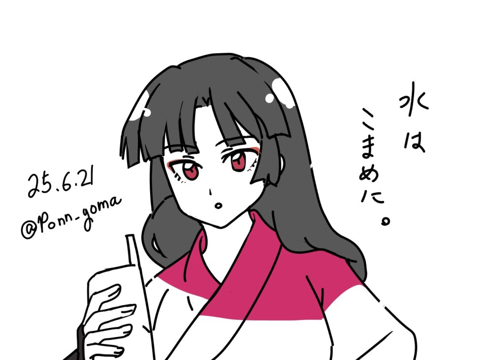梅雨どこ行ったねん!!!雲で遮られない6月の日差しもはや暴力。部屋でじっとしてるとつい水分後回しになっちゃうでね、気を付けなと注意されたい。呪詛の仮面の腰に手を当てて「ふん」なさんごちゃちょうかわいい。