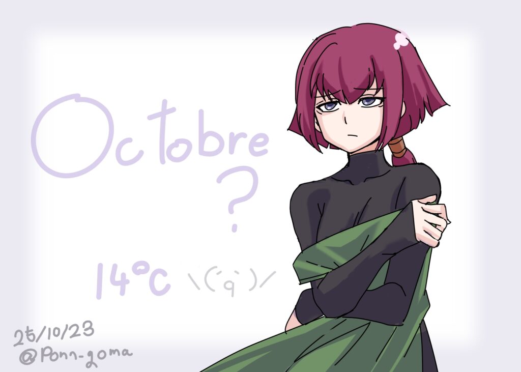 冷房から一週間で暖房にグランルトゥール、試されすぎるこの世界。最高気温14度だった時はホントもう何事かとね。ワイも胃腸をやりました。ノワールさんの歌って「夏が終わった、冬が来る」な歌詞が多いんですけど、それはそれとして秋が欲しかったなあと思う今日この頃です。